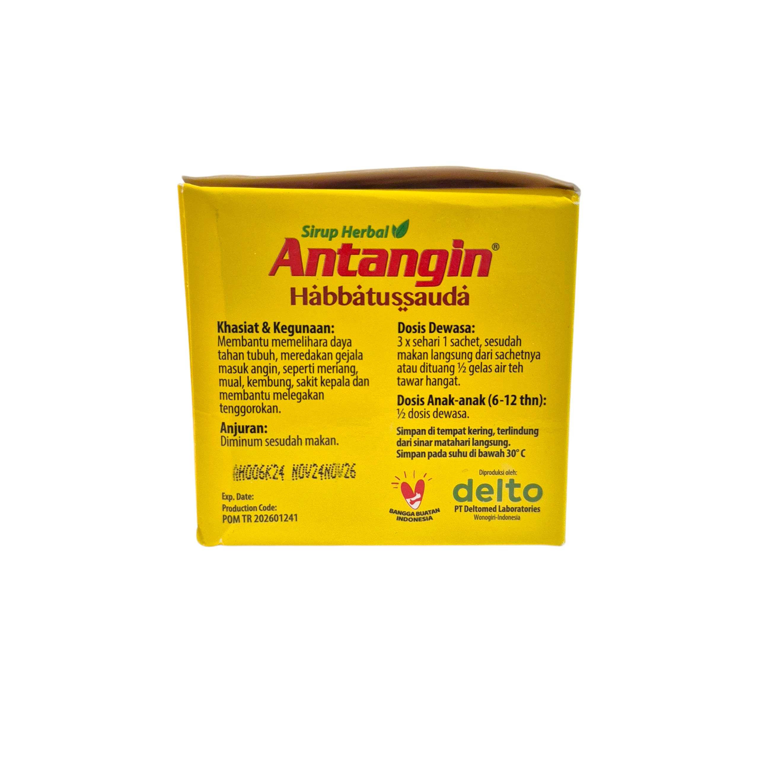 Antangin Habbatussauda + Honey is a liquid herbal supplement specially formulated to relieve symptoms of colds (masuk angin), fatigue, nausea, bloating, and wind-related discomfort. This powerful formula combines Habbatussauda (Black Seed) with pure honey, ginger, mint, and other trusted Indonesian herbs to help warm the body, ease digestion, and enhance immune function. Packed in 12 convenient 15ml sachets, it’s easy to carry and consume anytime you need a quick health boost.